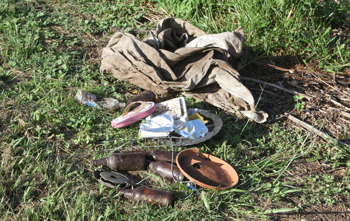 Sadly, not everyone loves our bushland and its surrounds. The discarded items above were recovered from a fairly small area beside a steam that runs through a revegetation patch recently worked on by the Dawn Road Reserve Bushcare group and local volunteers.