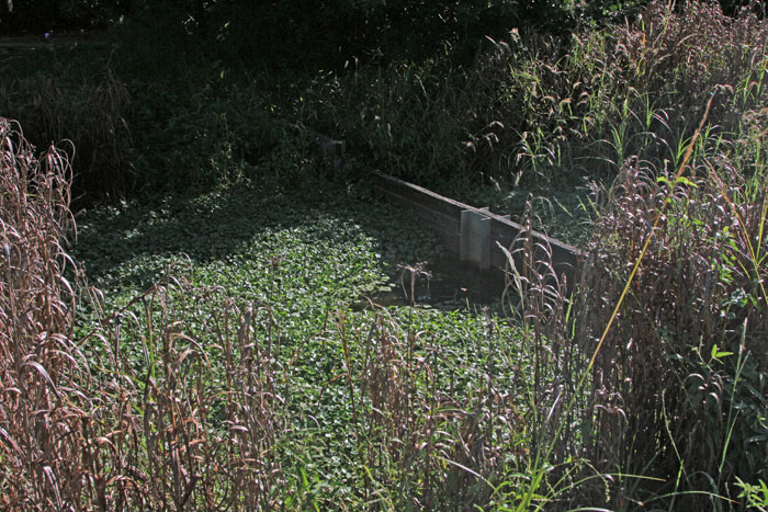 The sound of several striped marsh frogs (Limnodynastes peroni) was heard coming from in and around this waterway filter trap. Pic: Trina McLellan