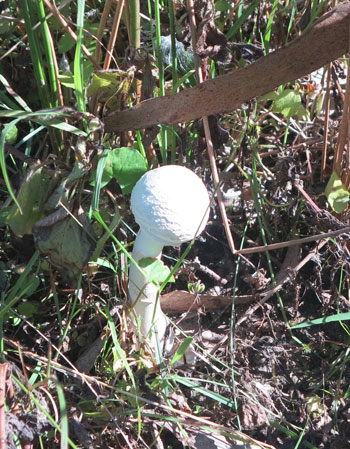 Almost mistaken for a golf ball, this bright white funghi specimen had popped up near the new planting in the Dawn Road Reserve after recent rains. Pic: Trina McLellan