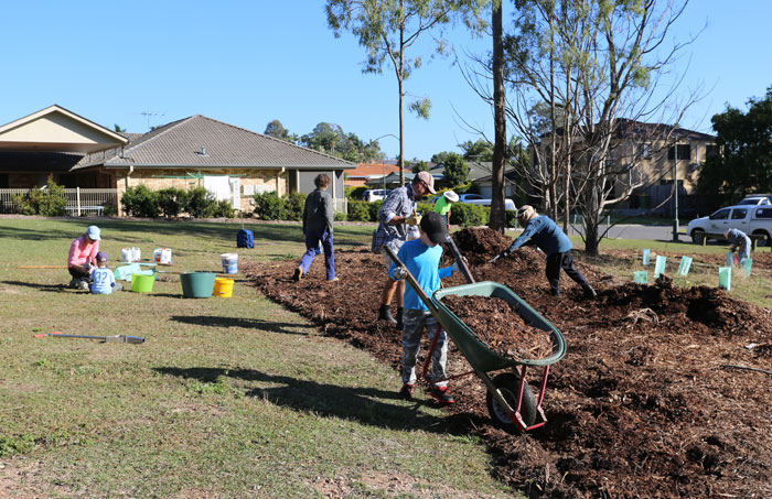 Again it was great to see the Albany Hills State School represented by one of its Year 3 students, who enjoyed building a very long pot snake from the plastic containers that had housed the plants being carefully positioned during the working bee.