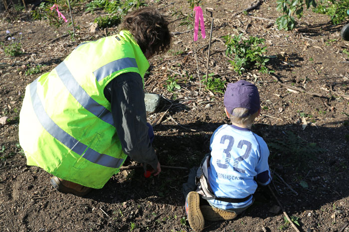 The Dawn Road Reserve Bushcare group would love to see more local dads like this one lend a hand with the revegetation project. Pic: Trina McLellan