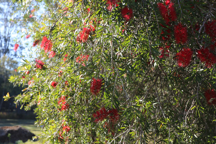 In between the two areas you can see a wonderful red bottlebrush (Callistemon viminalis) in full bloom