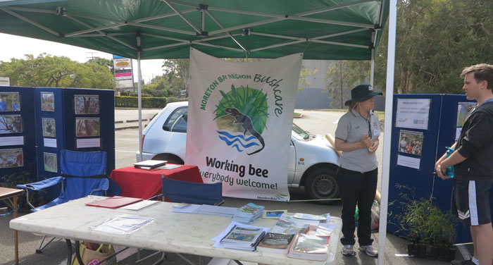 Dawn Road Reserve Bushcare patron Janet Mangan speaks to Albany Hills State School fete-goers. Pic: Trina McLellan