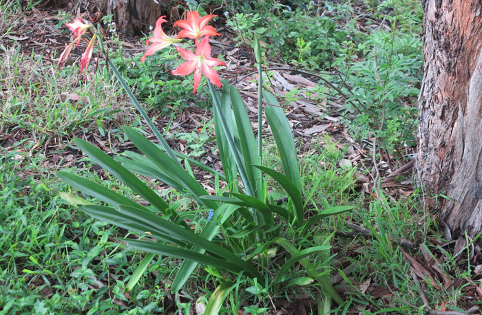Perhaps the prettiest and most delicate garden escapees we have seen in our revegetation area are these flowering hippeastrums. There are many similar varieties of this usually ornamental plant and this quite possibly is Hippeastrum puniceum (Barbados lily), which has made its way into the south-western edge of our revegetation patch. Although thought of by gardeners as a bulb, this is another plant that, once escaped from gardens, can spread by self-sown or bird-distributed seeds.