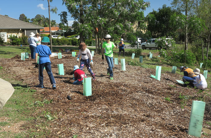 Another plant successfully positioned by an Albany Hills State School student at the October Dawn Road Reserve Bushcare working bee. Pic: Trina McLellan