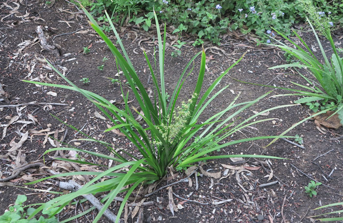 Of course, taming the regular weeds on this patch – such as Eugenia uniflora (Brazilian cherry), Senna pendula var. glabrata (Easter cassia) and the ubiquitous Onopordum acanthus (Scotch thistle) – is routine for our volunteers and, as the year wound up for our group, it certainly was no different in November. It’s a pleasure to see formerly overgrown areas giving life to native plants and grasses such as this Lomandra hysteria (Green mat rush). By the way, the Brazilian cherry isn’t the only South American invader on our patch. We also have Solanum seaforthianum (Brazilian nightshade) on the other side of the stream that bisects this revegetation site.