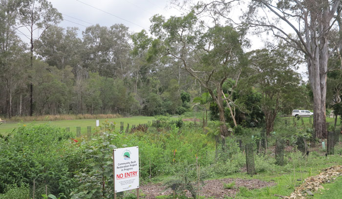 With the arrival of spring, and thanks to MBRC’s Bushcare officer Wendy Heath, the Dawn Road Bushcare Group finally saw signs erected in three places to warn off anyone not working on the revegetation project. This will allow the zone’s introduced plants to get properly established. The signs have been placed for maximum visual impact for anyone walking into the Reserve and past the project. Pic: Trina McLellan